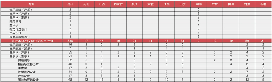 (一)除新疆維吾爾自治區(qū)播音與主持藝術(shù)、舞蹈編導(dǎo)專業(yè)采用新疆藝術(shù)學(xué)院??汲煽?jī)外,其他擬招生省份藝術(shù)類專業(yè)成績(jī)采用各省統(tǒng)考或聯(lián)考成績(jī)。報(bào)考學(xué)校藝術(shù)類專業(yè)考生的專業(yè)成績(jī)、文化成績(jī)均須達(dá)到所在?。ㄊ小^(qū))相應(yīng)藝術(shù)專業(yè)本科錄取控制分?jǐn)?shù)線。
