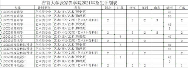 2021年吉首大學(xué)張家界學(xué)院藝術(shù)類本科專業(yè)招生計(jì)劃