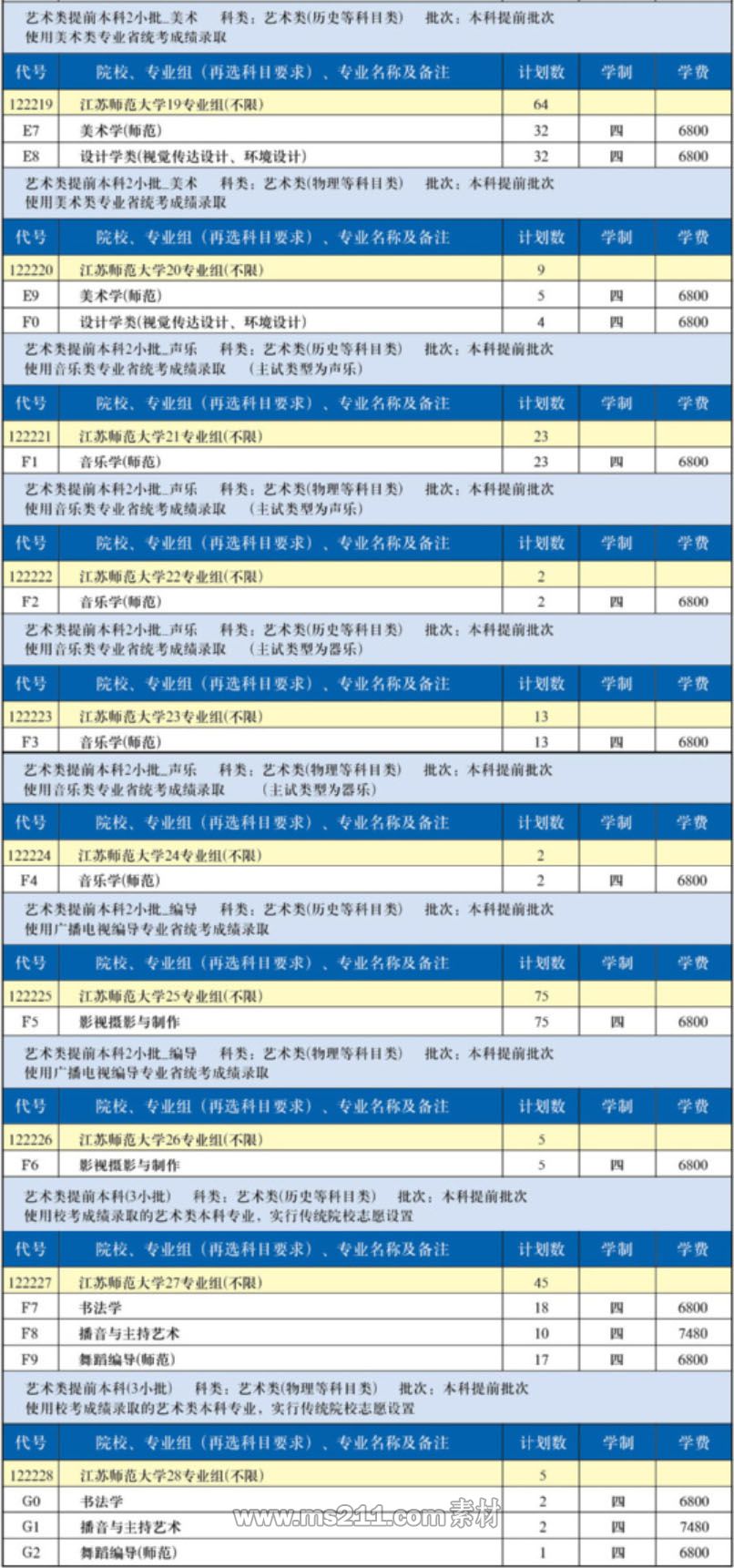 江蘇師范大學(xué)2021年藝術(shù)類??际》?、專業(yè)、合格線