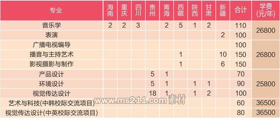 使用藝術(shù)類省統(tǒng)考成績錄取的省份,按該省有關(guān)政策執(zhí)行,如所在省份沒有明確規(guī)定,則按照文化分和專業(yè)分各占50%的比例錄取,計算方式為:文化成績×50%+專業(yè)成績×50%,從高分到低分擇優(yōu)錄取。