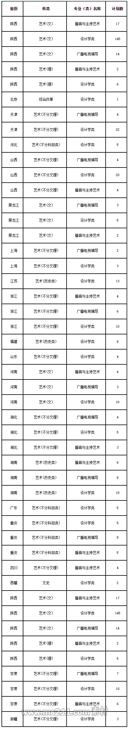 2.陜西省生源: