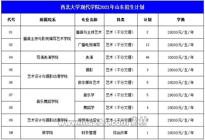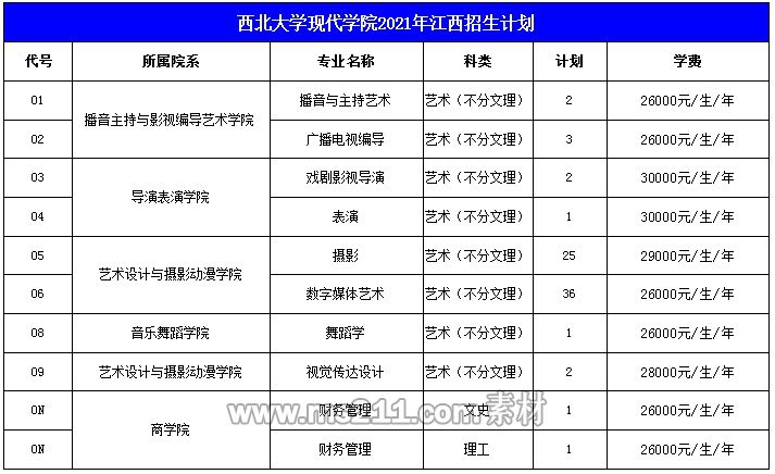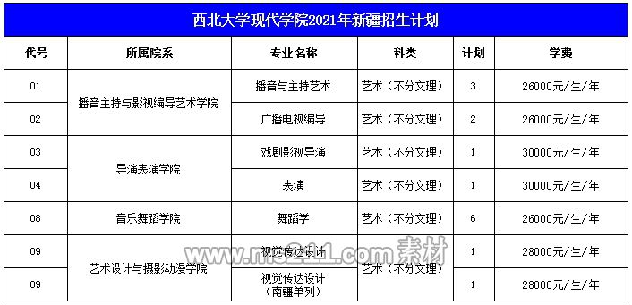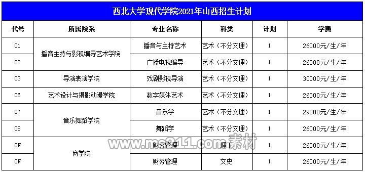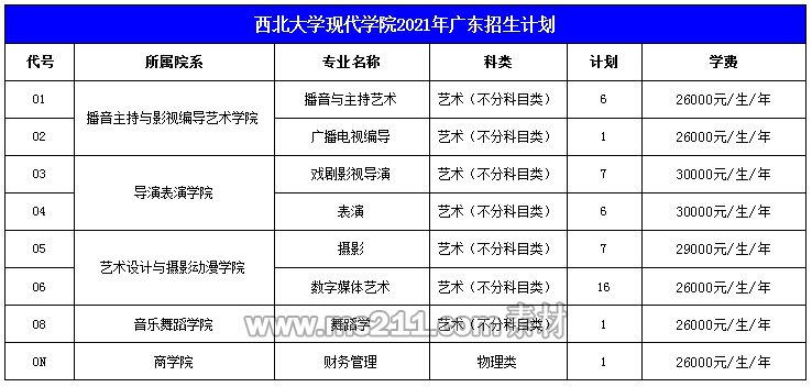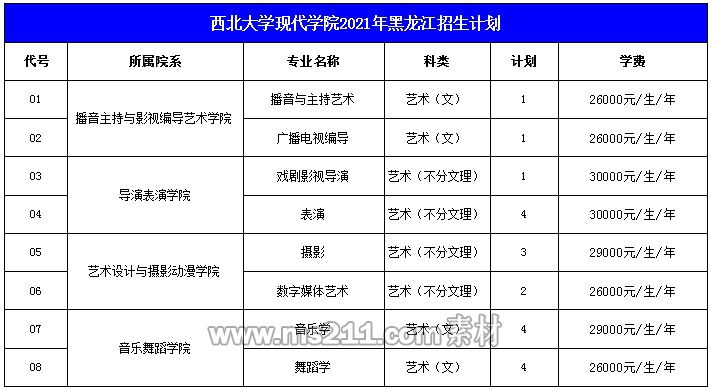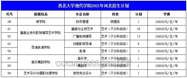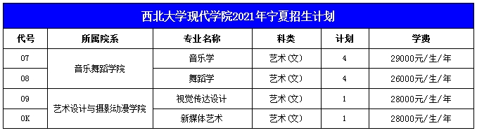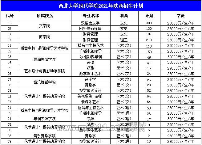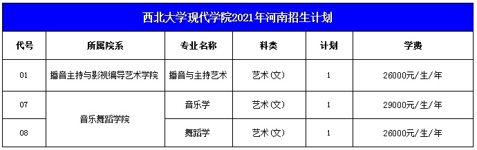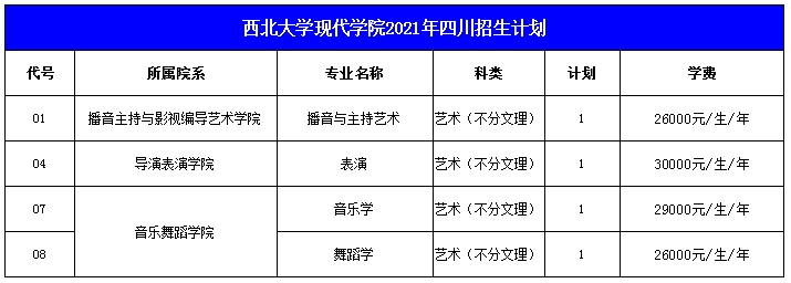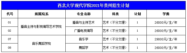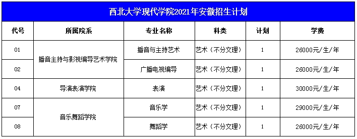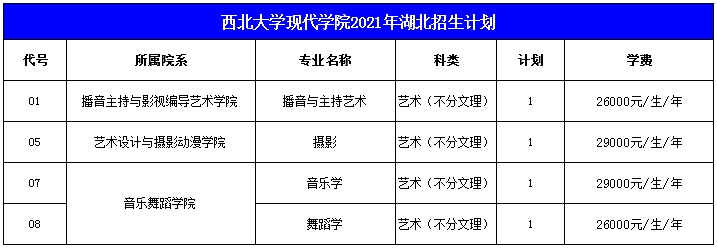 2021年西北大學(xué)現(xiàn)代學(xué)院藝術(shù)類本科專業(yè)招生計(jì)劃