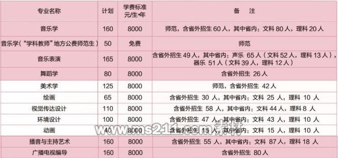 2021年洛陽師范學院藝術類本科專業(yè)招生計劃