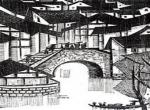 成角透視就是景物縱深與視中線成一定角度的透視,凡是與畫面既不平行又不垂直的水平直線,都消失于視平線上的一點,叫余點,余點在視平線
