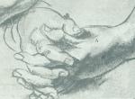 在素描中手非常難畫,但通過研究可以最終征服它。首先要對付的問題是體塊及體塊的方位。叫人頭痛的是手上有十六種不同的體塊要考慮:整
