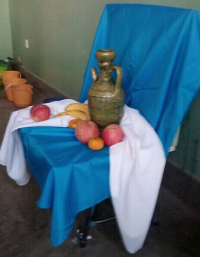 石河子考點(diǎn):兩塊襯布,一個瓷瓶,三個香蕉,四個蘋果,兩個橘子。