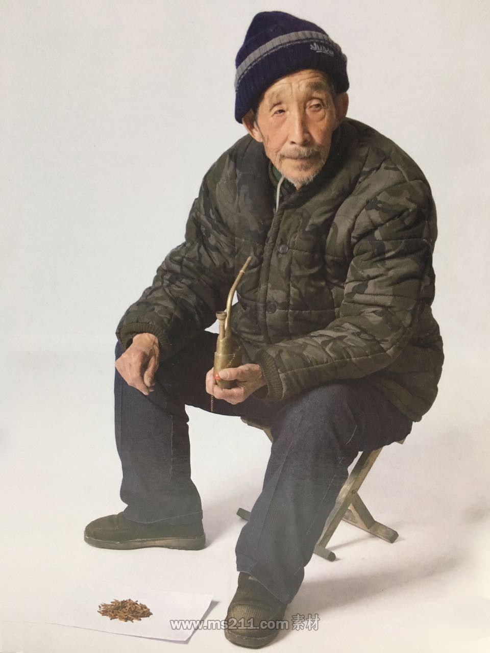速寫題目: 一個座在凳子上手拿煙袋的老大爺