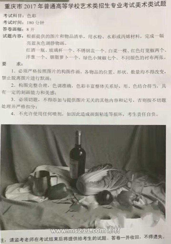 2017年重慶美術(shù)聯(lián)考/統(tǒng)考色彩考題
