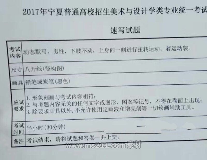 2017年寧夏美術(shù)聯(lián)考考試題目(完整版)