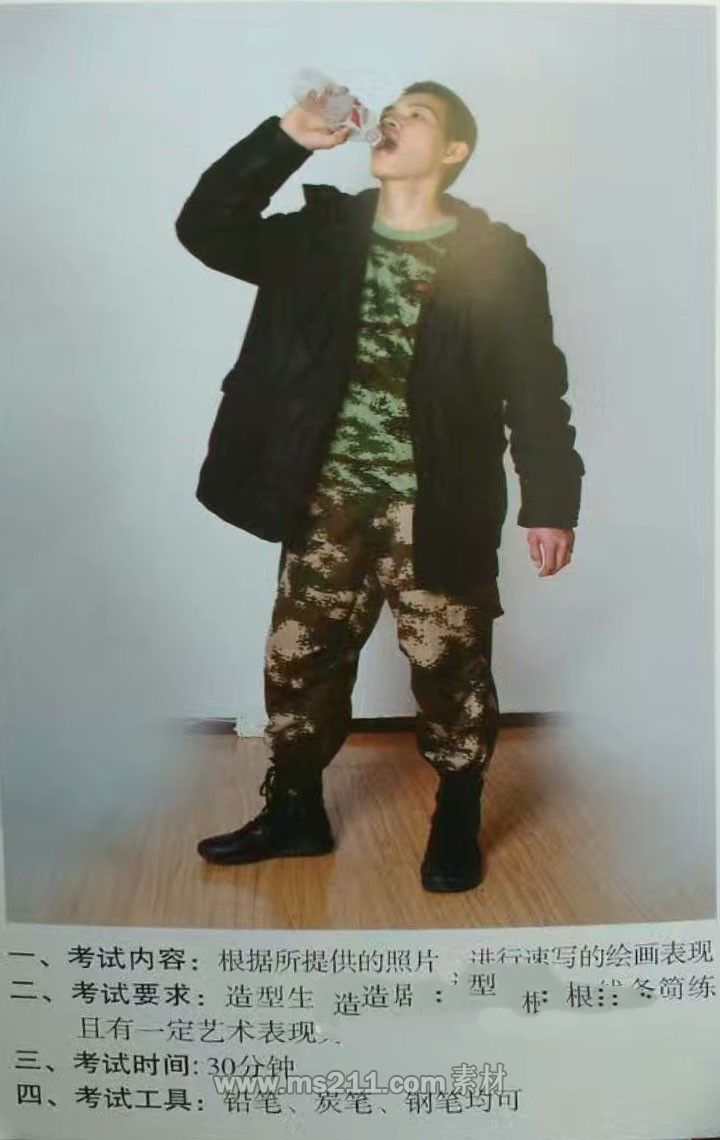 速寫(xiě)考題:仰頭喝水的男青年(站姿)