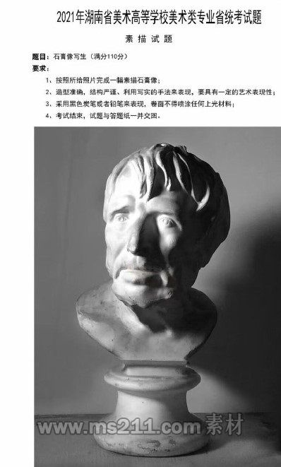 素描考試內(nèi)容范圍:靜物、石膏像、人物頭像、人物胸像、人物帶手半身像。