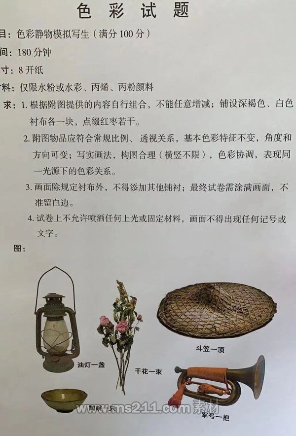 色彩考題:靜物組合模擬寫(xiě)生,內(nèi)容自行組合,不得增減物體。