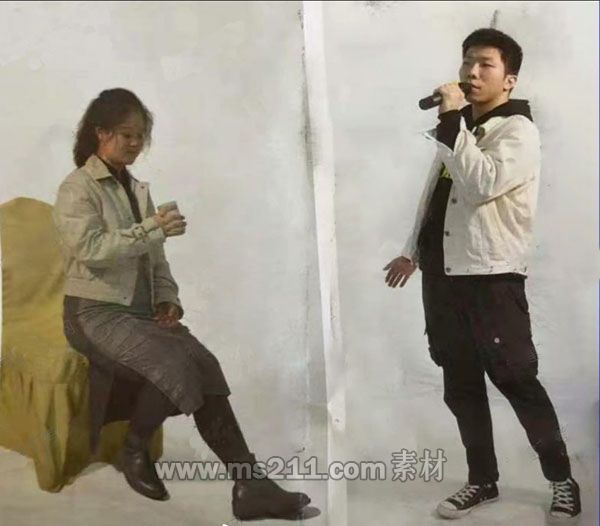速寫考題:畫照片,雙人速寫。男青年左右拿著話筒唱歌,站姿。女青年右手拿著茶杯,眼睛看著茶杯,坐姿。