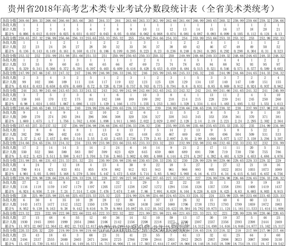 相關(guān)熱詞搜索:分?jǐn)?shù)段 統(tǒng)計表 貴州 2018貴州美術(shù)聯(lián)考分?jǐn)?shù)段統(tǒng)計表
