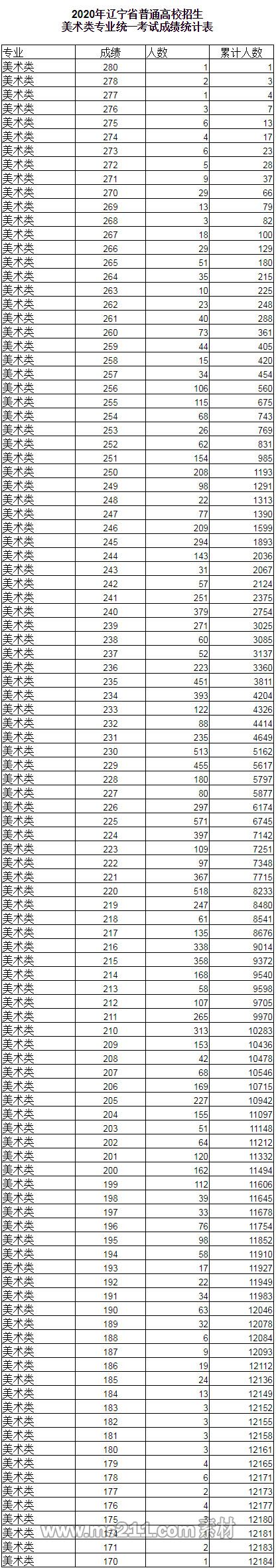 2020年遼寧省美術(shù)類本科專業(yè)統(tǒng)考合格分?jǐn)?shù)線為185分,且3門科目中至少有2門各不低于60分;??茖I(yè)統(tǒng)考合格分?jǐn)?shù)線為170分。