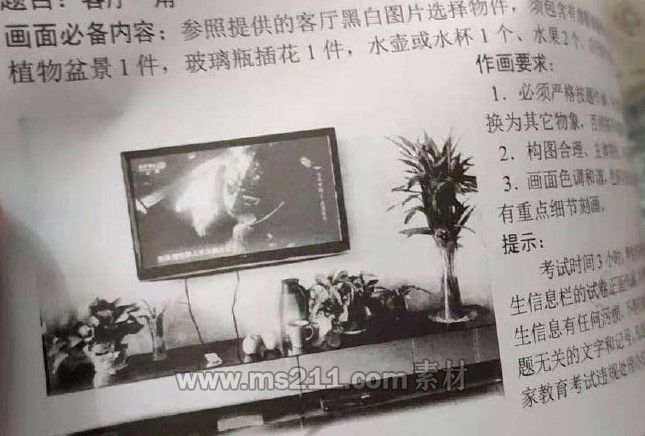 2021年四川美術(shù)聯(lián)考色彩科目考試12月5日14:00-17:00舉行,考試滿(mǎn)分為100分,考題為《客廳一角》,場(chǎng)景色彩靜物畫(huà)照片,具體如下圖: