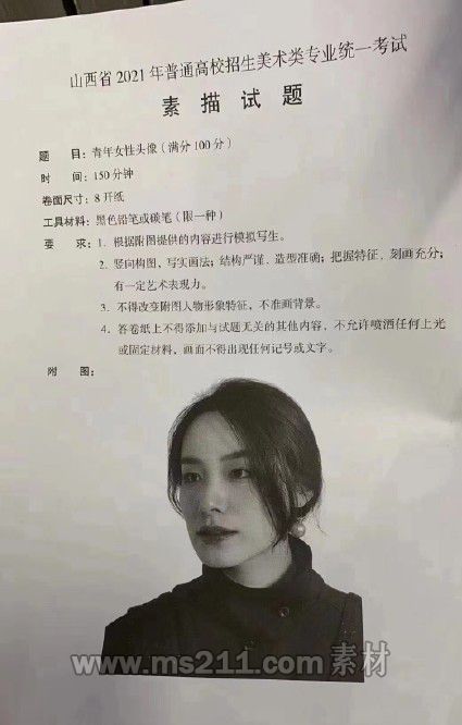 素描考試真題:女青年頭像,模擬寫生(畫照片)