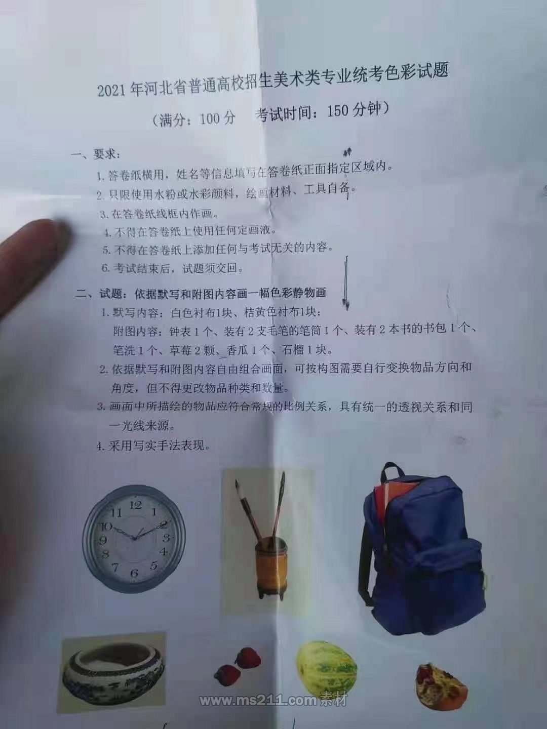 6.考試結(jié)束后,試題須交回。二、試題:依據(jù)默寫和附圖內(nèi)容畫一幅色彩靜物畫