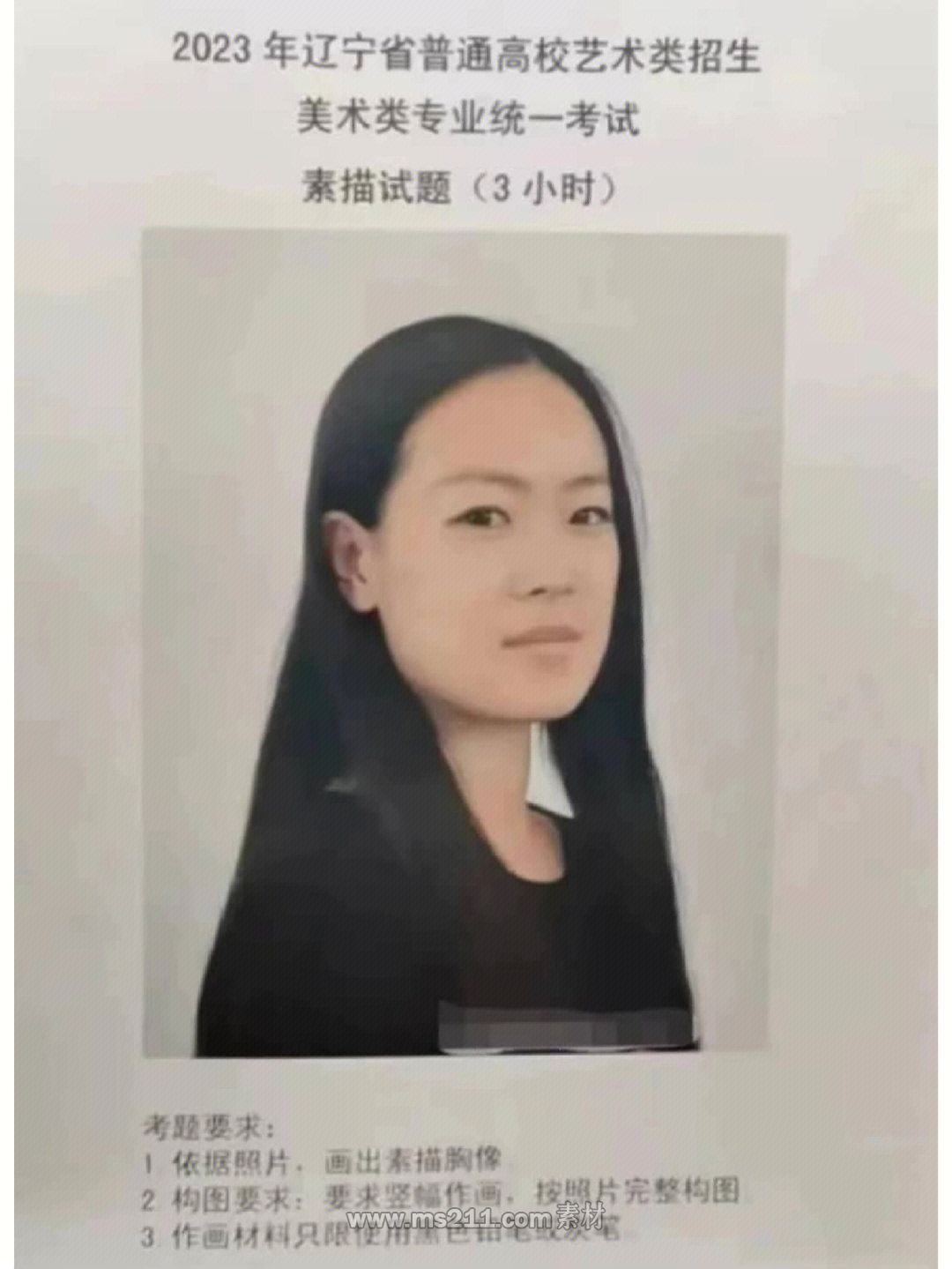 素描考題:長發(fā)女青年胸像,照片模擬寫生,豎構(gòu)圖(如下圖)