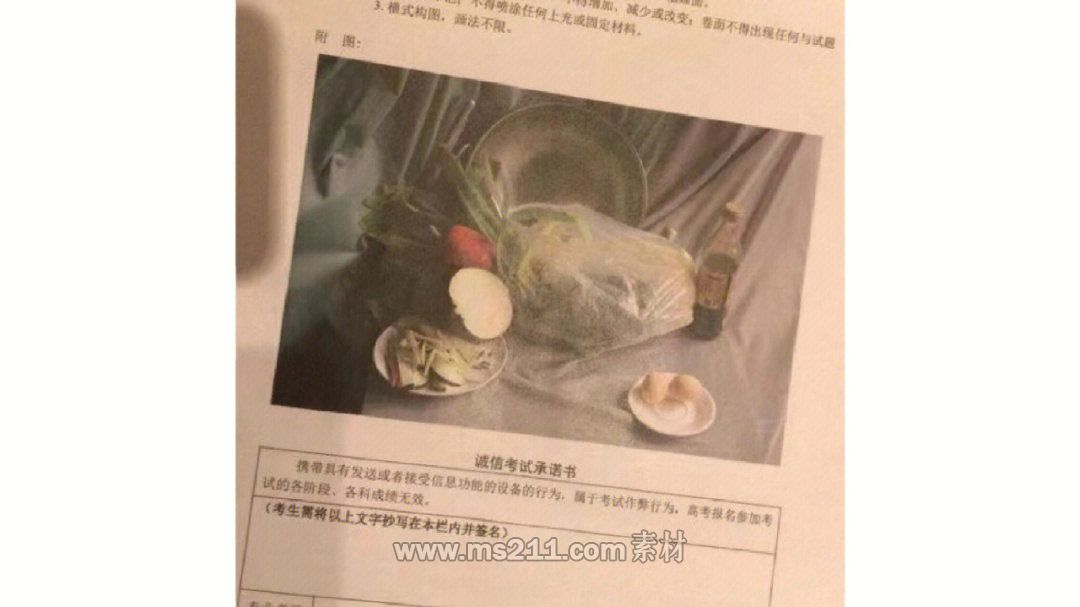 考試用具:八開素描紙,由考點(diǎn)提供;限用鉛筆、炭筆,考生自備畫具。