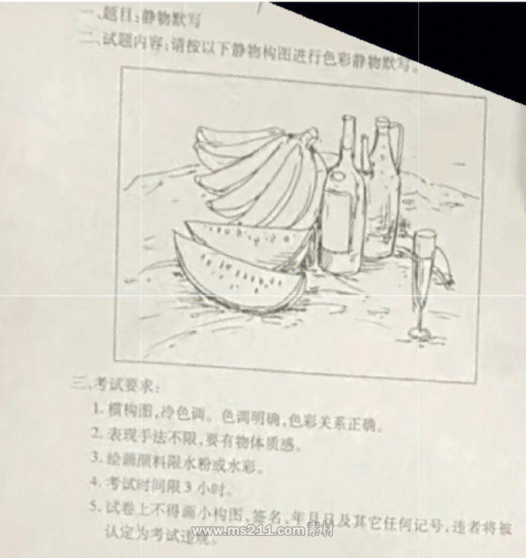 考試用具:限水粉、水彩形式表現(xiàn);4開鉛畫紙。