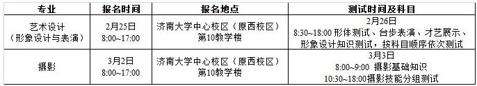 3、攝影、藝術(shù)設(shè)計(形象設(shè)計與表演方向)專業(yè)測試均由本校組織,報考該專業(yè)的考生(含外省考生)需到濟(jì)南大學(xué)參加專業(yè)測試。