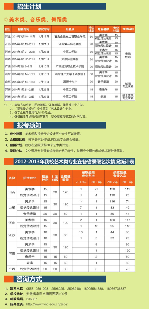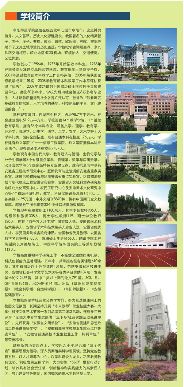 相關(guān)熱詞搜索:阜陽(yáng) 藝術(shù)類(lèi) 招生簡(jiǎn)章 阜陽(yáng)師范學(xué)院