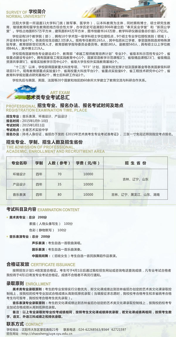 相關熱詞搜索:沈陽大學 吉林省 藝術類 招生簡章