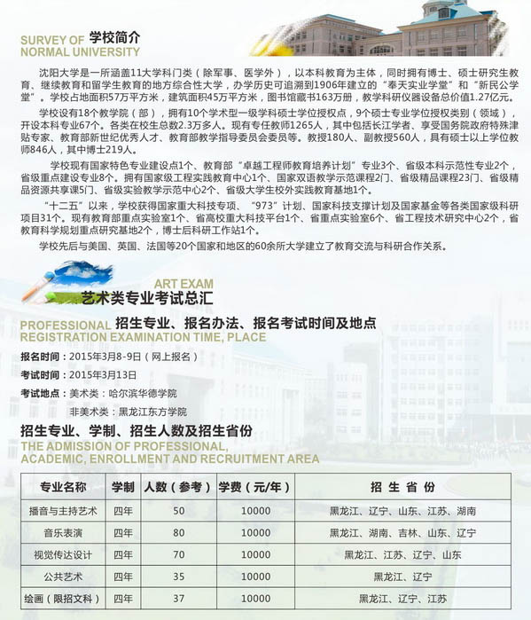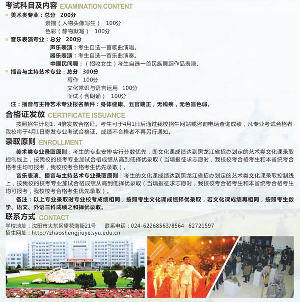 相關(guān)熱詞搜索:沈陽大學(xué) 黑龍江 藝術(shù)類 招生簡章