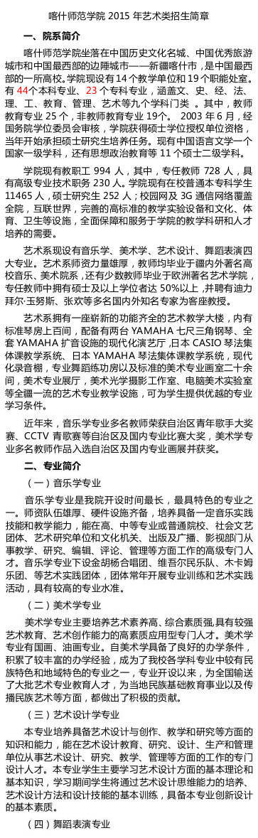 相關(guān)熱詞搜索:喀什 藝術(shù)類(lèi) 招生簡(jiǎn)章 喀什大學(xué)