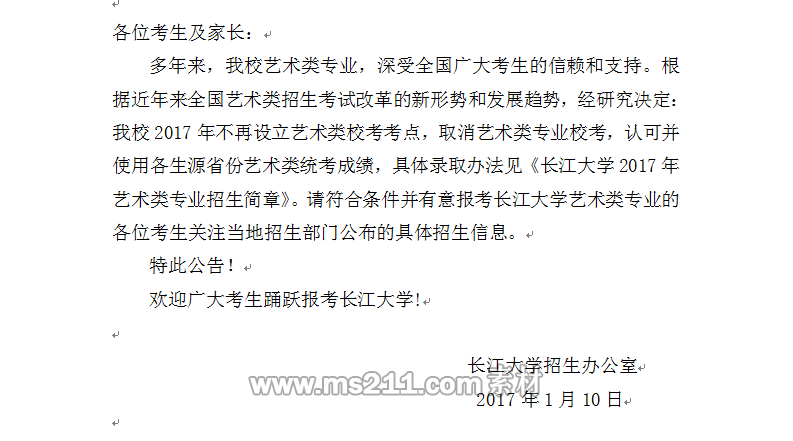 相關(guān)熱詞搜索:長江大學(xué) 藝術(shù)類 公告 2017年長江大學(xué)取消藝術(shù)類校考公告