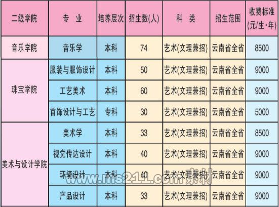 保山學(xué)院2017年云南省藝術(shù)類專業(yè)招生計(jì)劃