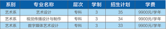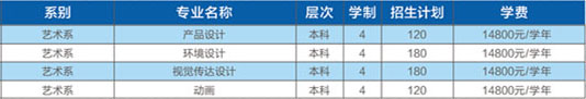 藝術(shù)類本科專業(yè)學(xué)費(fèi)為14800元/學(xué)年/生(含:環(huán)境設(shè)計(jì)、視覺(jué)傳達(dá)設(shè)計(jì)、產(chǎn)品設(shè)計(jì)、動(dòng)畫(huà)),藝術(shù)類專科專業(yè)學(xué)費(fèi)為9900元/學(xué)年/生(含:藝術(shù)設(shè)計(jì)、視覺(jué)傳播設(shè)計(jì)與制作、數(shù)字媒體藝術(shù)設(shè)計(jì)專業(yè))。