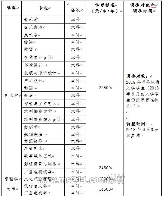 根據《關于我省民辦學校收費實行自主定價有關問題的通知》(云發(fā)改物價[2016]1077號)文件精神,為更好地完成文華學院總體發(fā)展目標,提升綜合辦學實力,充分發(fā)揮自身優(yōu)勢和潛能,加快建成“擁有一流專業(yè)、一流師資隊伍的區(qū)域性高水平藝術大學”,根據學院相關部門對辦學成本進行測算的結果,結合學院發(fā)展需求以及對地方經濟發(fā)展水平、社會承受能力的綜合考量,經2017年12月11日院務會研究決定,對2018年秋季入學學生學費進行調整。