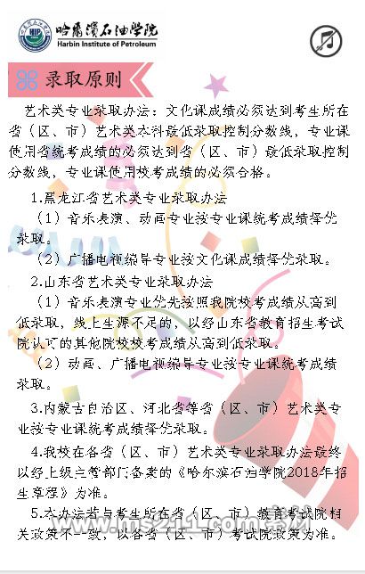相關(guān)熱詞搜索:哈爾濱 藝術(shù)類 招生簡(jiǎn)章 2018年哈爾濱石油學(xué)院藝術(shù)類本科招生簡(jiǎn)章