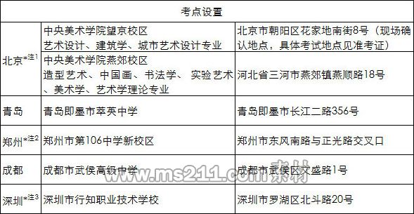 1.北京考點只接受北京、天津、河北、山西、內(nèi)蒙五省市考生進行報考確認(rèn)并考試;報考中國畫、書法學(xué)、實驗藝術(shù)、建筑學(xué)、美術(shù)學(xué)、藝術(shù)學(xué)理論的考生一律在北京考點參加專業(yè)考試;