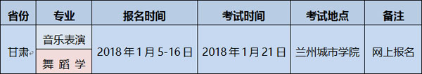 2.2017年我音樂(lè)表演和舞蹈學(xué)專業(yè)只在甘肅省進(jìn)行校考;
