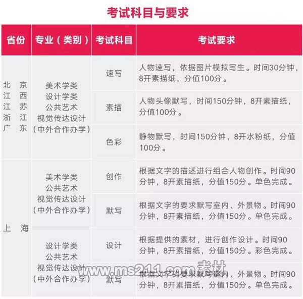 備注:上海考生可兼考美術(shù)類和設(shè)計類,其中默寫為公共考試科目,只需一次考試。