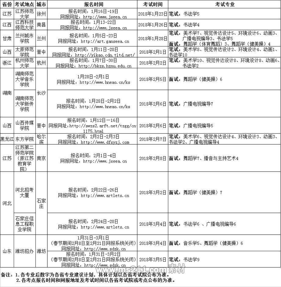 2018年上饒師范學(xué)院藝術(shù)專業(yè)考試時(shí)間安排表