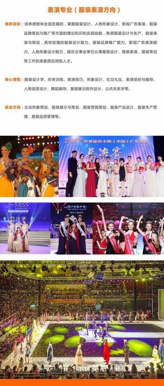 通過考試檢測(cè)考生是否具備所規(guī)定的身體條件、良好的音樂聽覺能力、服裝模特表演能力、藝術(shù)修養(yǎng)及審美能力、觀察與表現(xiàn)能力等。