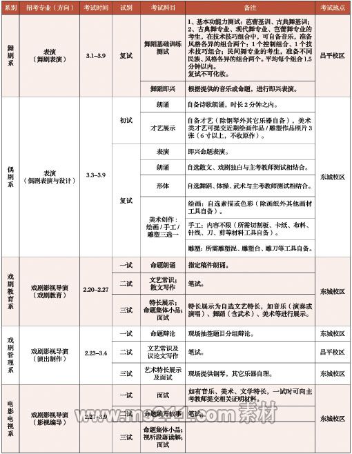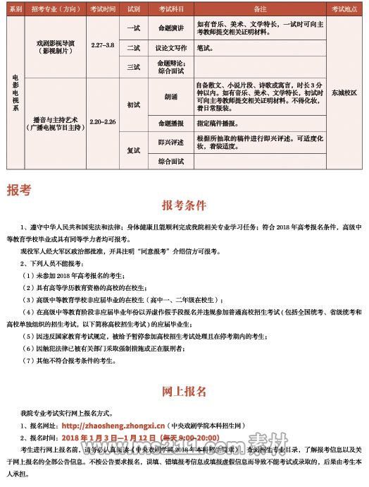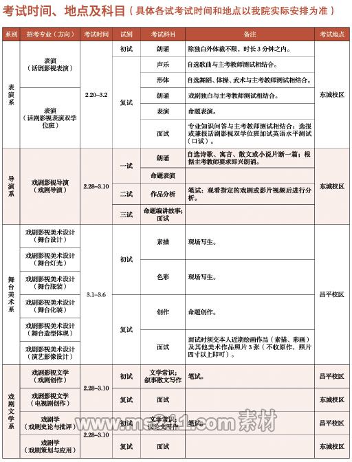 中央戲劇學(xué)院2018年本科專業(yè)考試復(fù)(二)試、三試考試安排