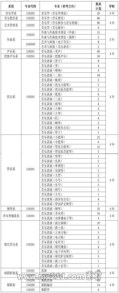 ?、倜缆暋⒚褡迓晿?、笛子、笙、嗩吶、二胡、板胡、民樂大提琴、民樂低音提琴、琵琶、三弦、揚(yáng)琴、古箏、古琴、阮、柳琴、民族打擊樂、管子、長笛、單簧管、雙簧管、大管、小號、長號、圓號、大號、管弦薩克斯管、管弦低音提琴、西洋打擊樂、手風(fēng)琴、雙排鍵電子琴、流行演唱、現(xiàn)代鍵盤、現(xiàn)代薩克斯管、爵士小號、爵士長號、爵士鼓、古典吉他、電吉他、電貝司、電子手風(fēng)琴、音樂教育: