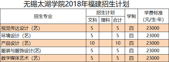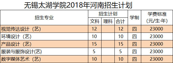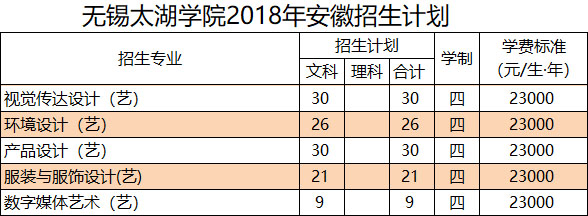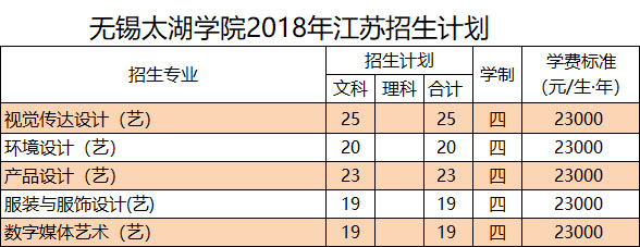 2018年無錫太湖學(xué)院美術(shù)類本科招生計劃(江蘇、安徽、湖北、浙江不分文理,其余省份只招收藝術(shù)類文科)