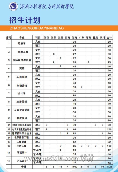 八、招生計劃:學(xué)院2018年面向湖南、浙江等9個省計劃招生1100名。分省分專業(yè)招生計劃,以各省招生管理部門公布為準(zhǔn)。