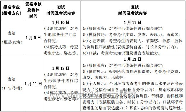 考生只能在表演(服裝表演)、表演(廣告?zhèn)鞑ィ?個(gè)專(zhuān)業(yè)方向中選擇1個(gè)報(bào)考,考生須在本省藝術(shù)類(lèi)相應(yīng)類(lèi)別統(tǒng)考本科合格基礎(chǔ)上參加??迹駝t??汲煽?jī)無(wú)效,省統(tǒng)考未涉及到的除外。