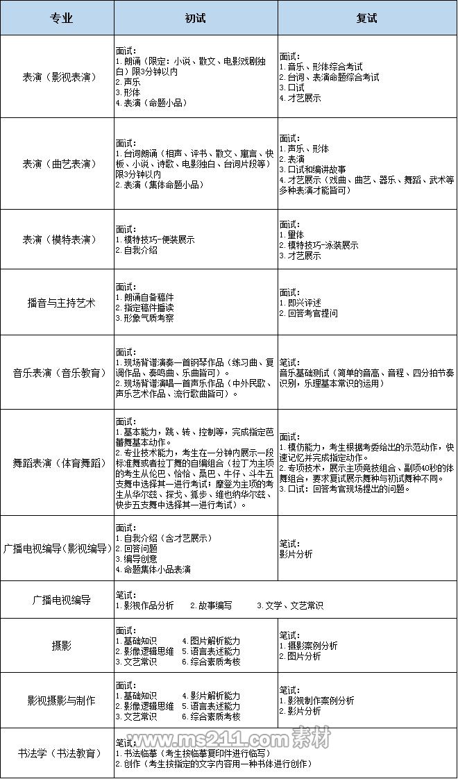 ?。ǘ?校考專業(yè)考試內(nèi)容安排如下: