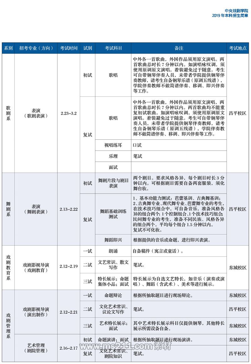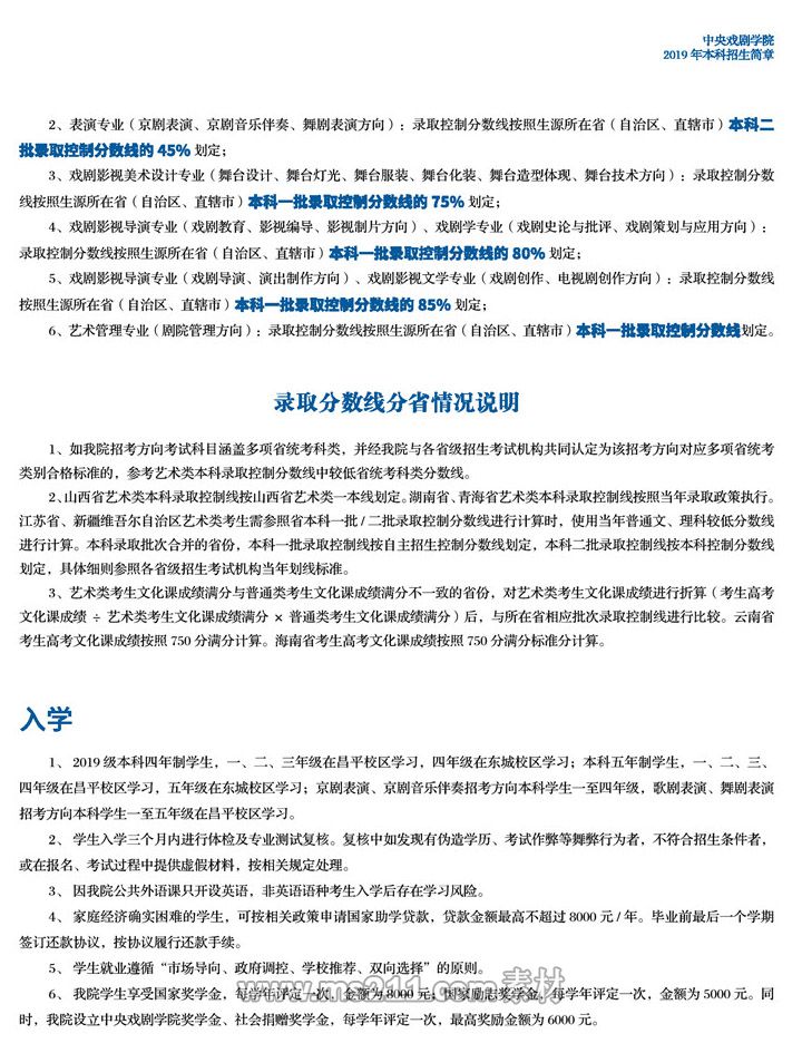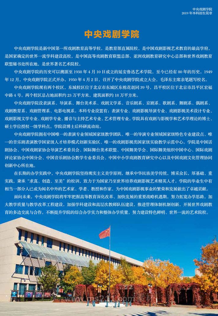 中央戲劇學(xué)院2019年本科招生簡章