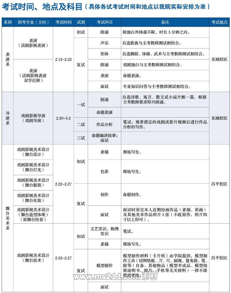 關(guān)于增加中央戲劇學(xué)院舞臺美術(shù)系初試考試時間的公告