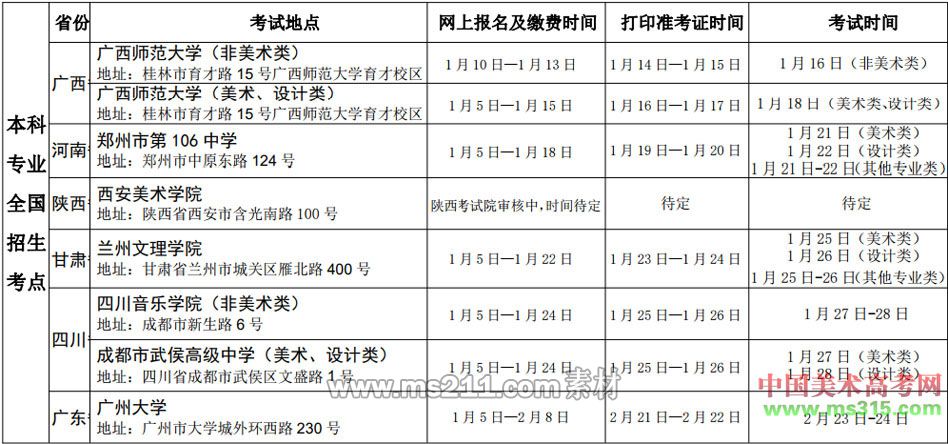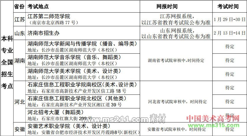 2.內(nèi)地各省報考時間、地點(我院藝術(shù)升網(wǎng)報系統(tǒng))