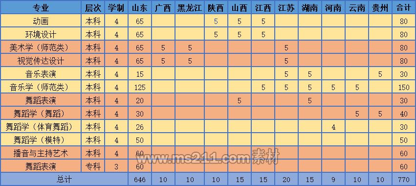 3.使用山東省聯(lián)考成績(jī)的藝術(shù)類本科專業(yè),錄取時(shí)在投檔考生中按專業(yè)考試成績(jī)從高分到低分擇優(yōu)錄取。